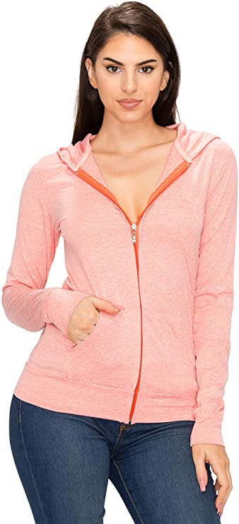 Blush Women’s Full Zip Hoodie Jacket – Lightweight Long Sleeve Hooded Zip Up Pullover Sweatshirts Sports Workout