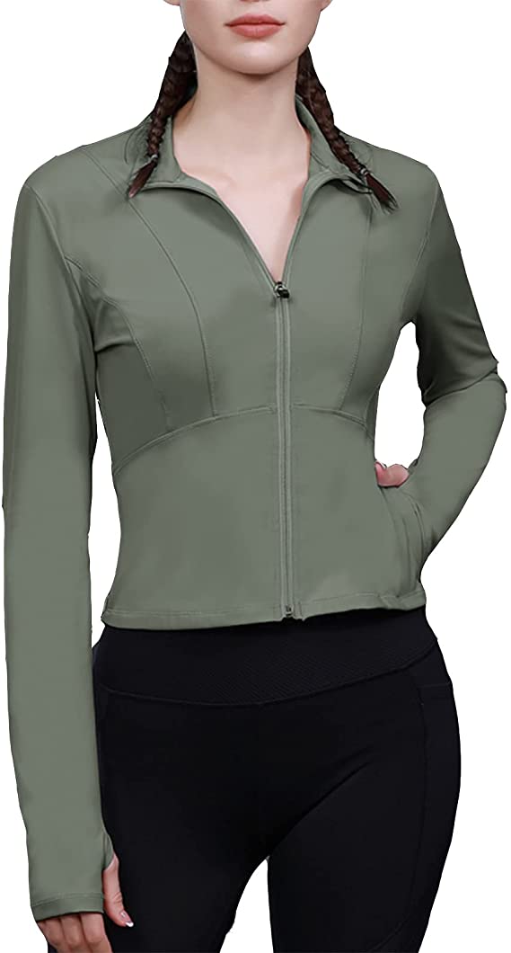 – The crop jackets are designed with full zip up, long sleeve with thumb holes, two zip up pockets in front, slim fit. Stylish seaming adds a sleek fit to this performance jacket.