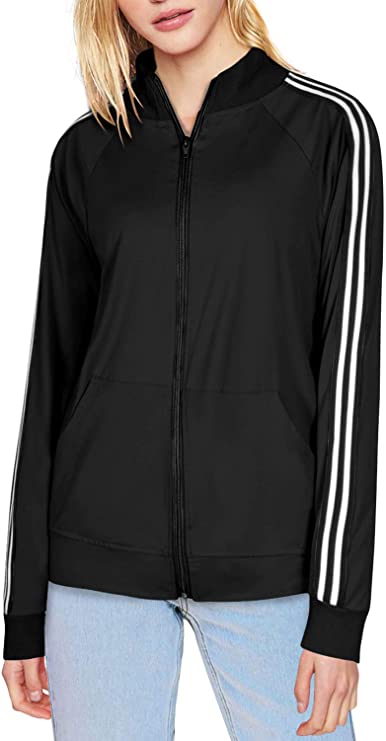 The long sleeve shirts full zip track jacket comes in a sleek and fitted design.Stripes on both sides add sporty fashion sense.