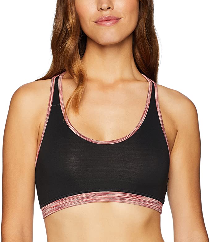 Sports bra for women cut in a reversible stretch fabric, with a small coverage. Complete with a low support.