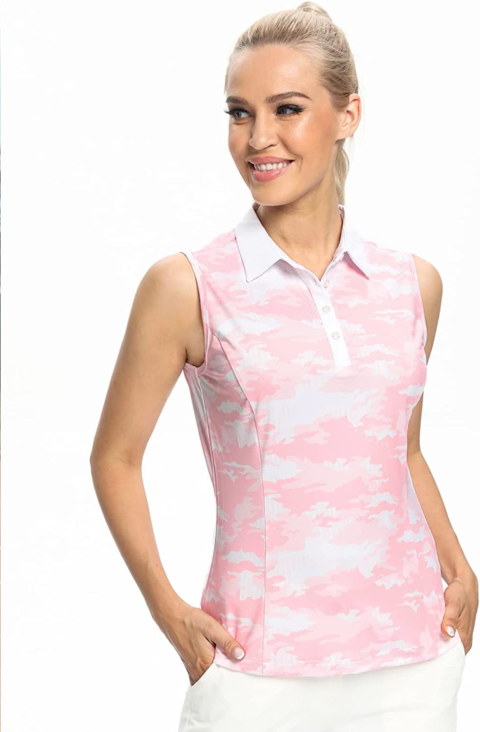 Hiverlay Womens Golf Shirts Sleeveless Polo Shirts Camo Tank Tops Slim Fit Tennis Shirts