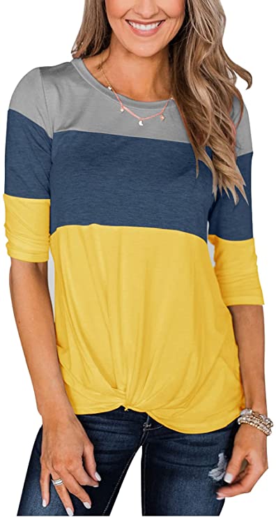 Minthunter Women’s Half Sleeve T Shirts Casual Color Block Round Neck Spring Tops