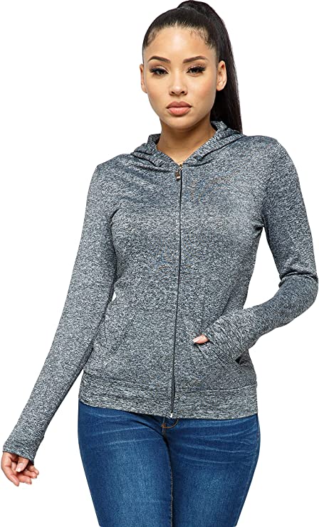 Soft yet slim, this is a basic solid colored zip sweater that actually looks good and can be worn for more than just lounging and working out in. With the snug fit that accentuates your figure, you can dress this up with style.