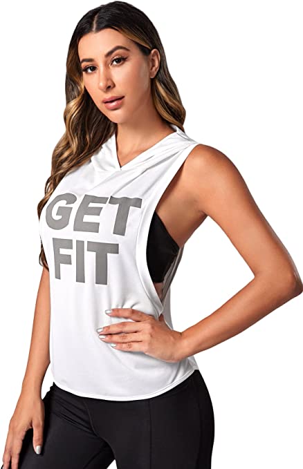 Verdusa Women’s Letter Graphic Sleeveless Workout Sport Hooded Tank Top