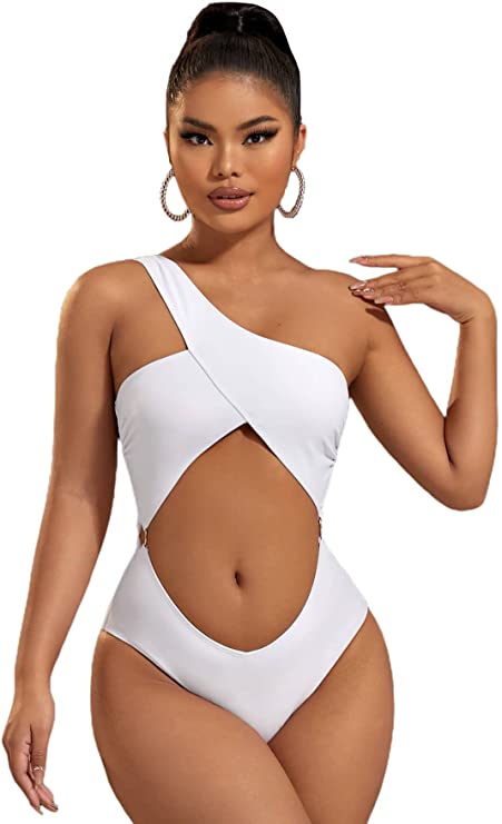 SheIn Women’s One Piece Swimsuits One Shoulder Cut Out Monokini Bathing Suit