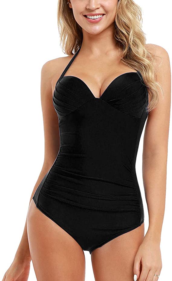With cute sweetheart bustline,look sexy. Built in thin and soft molded bra without steel, provide plenty of freedom and comfy.The fixed folded ruched in the bust area,look chic and rich.The adjustable halter straps can make the most personal fit by yourself. The plenty gathered ruched design in the stomach area,great to conceal your tummy,hide belly flaws,create a slimming effect,flattering and slimming look.The stylish design swimsuit with pop style will make you have a wonderful summer. That is the best choice for summer swim or beach wear.