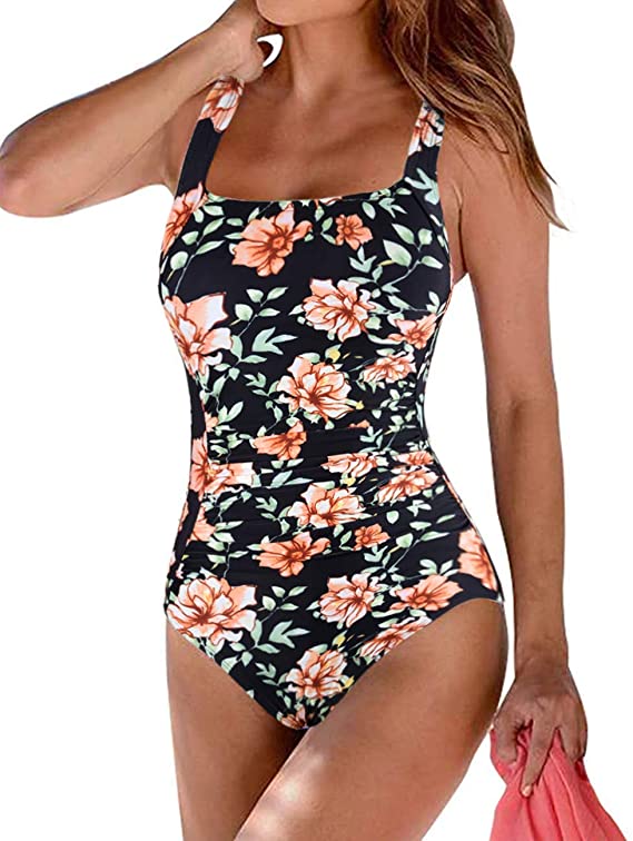 Firpearl Women’s One Piece Swimsuits Vintage Tummy Control Bathing Suit Slimming Ruched Swimwear