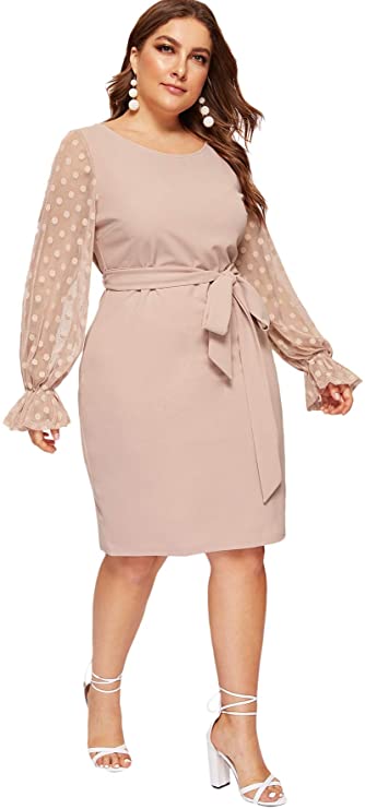 SheIn Women’s Plus Elegant Mesh Contrast Appliques Sleeve Stretchy Bodycon Pencil Dress