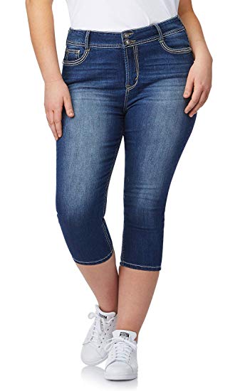 Plus Size Luscious Curvy denim capris featuring a double button closure and a contoured waistband to prevent gapping while creating a slim silhouette. Heavy stitch detailing and rhinestone embellished flap back pocket. WallFlower Jeans is a lifestyle brand that provides stylish looks from head-to-toe at an exceptional value. The brand offers jeans from Classic and Curvy to Plus Size options in a variety of washes. In addition to denim, they offer tops, dresses, outerwear, loungewear, sleepwear and intimate apparel, watches and jewelry.