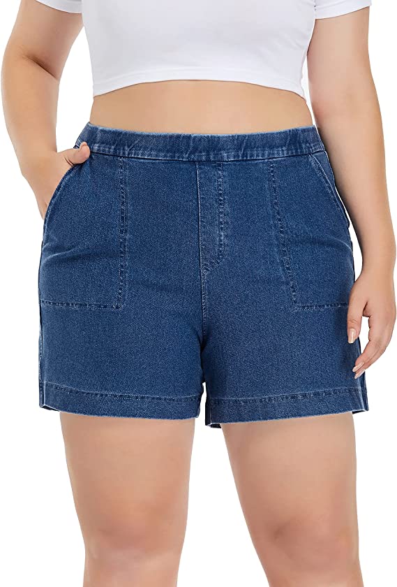 These Plus-Size jean shorts are made of high quality cotton denim material, they are lightweight and breathable, you won’t feel sultry in summer for this comfortable material, and the high stretch fabric is prefect for plus size girls or women.