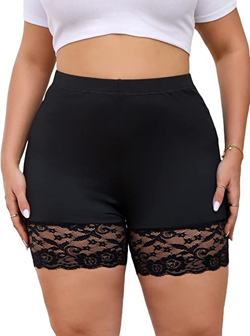 SOLY HUX Women’s Plus Size Floral Lace Sheer Scalloped Trim High Waisted Shorts