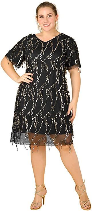 - Gorgeous glitter stripes decorate this fluted dress that flatters your figure while providing a comfortable stretch.