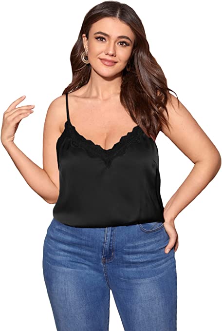 Milumia Women’s Plus Size Lace Trim Camisole Solid Spaghetti Strap Cami Tank Top