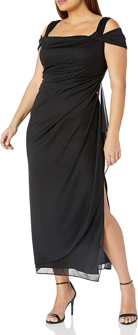 Alex Evenings Women’s Plus-size Plus Size Cold-Shoulder Dress Side Ruched Skirt Dress