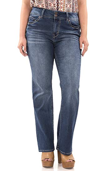 These Plus-Size Luscious Curvy Bootcut jeans feature a double button closure, and contoured waistband to prevent gapping while creating a slim silhouette. Comes in 30″, 32″, and 34 ” inseam and with different wash options.
