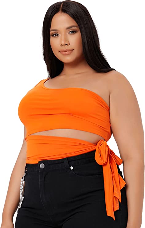 WDIRARA Women’s Plus Size One Shoulder Cut Out Tie Side Sleeveless Crop Top