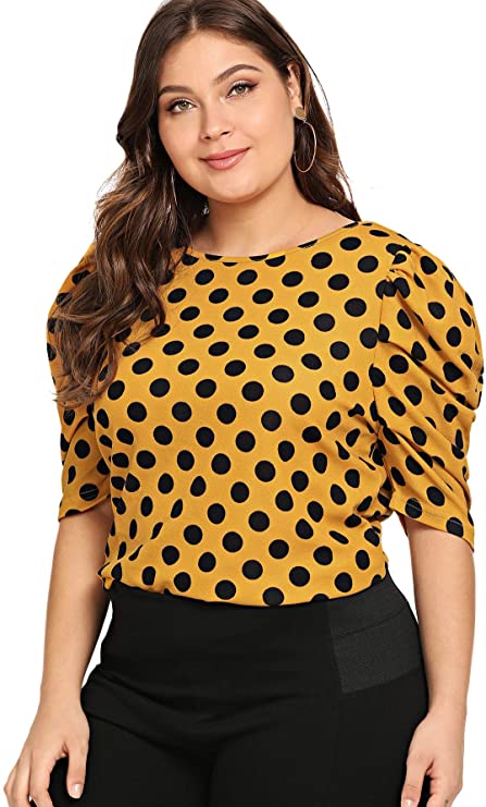 Floerns Women’s Plus Size Puff Sleeve Blouse Tops Summer Short Sleeve Printed Top Shirt