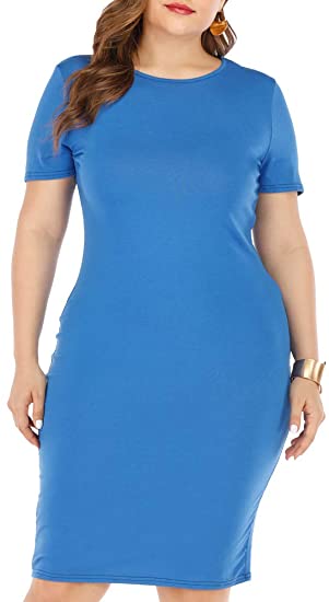 Gxlu Women’s Plus Size Short Sleeve T-Shirt Dresses Casual Round Neck Bodycon Pencil Dress