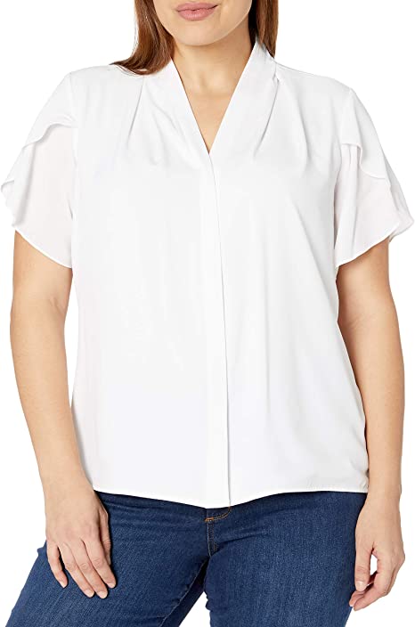 Calvin Klein work wear essential. Plus size short sleeve v-neck top