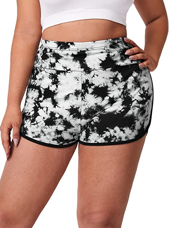 Floerns Women’s Plus Size Tie Dye Elastic Waist Active Workout Track Shorts