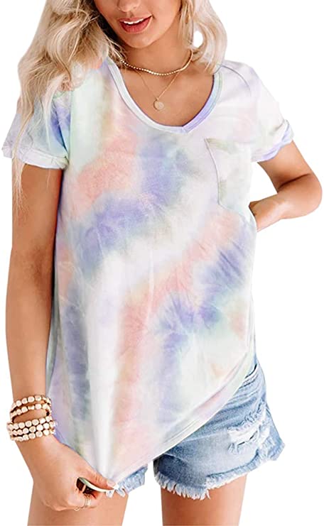 Featuring Soft Lightweight T-shirt Material Patterned With A Colorful Tie Dye Print, Subtle Ribbed Texturing, A V-cut Neckline That Can Be Worn Off One Shoulder, Exposed Accent Seams, Short Loose Sleeves, And An Ultra Relaxed Silhouette That Falls Into A Straight Heml