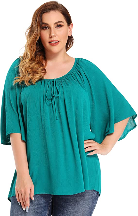 This new blouse is made by pretty wrinkle viscose , breathly and soft . Loose fit by 7 size for all plus womens.
