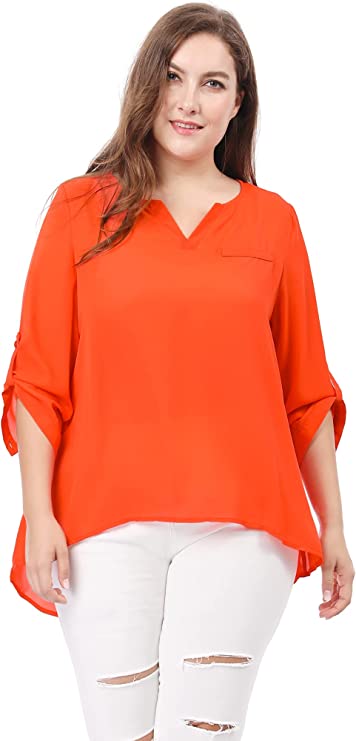 - Women’s Plus Size Tops Split-Neck High Low Hem 3/4 Sleeves Blouse for Feminine Lady