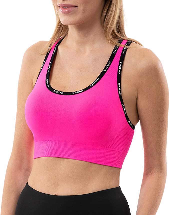 The Bebe Sport Women’s Seamless Built Up Racer Back Mini Logo Sport Bra Style Sport Bra with BEBE Logo Band, Style BB2249, is designed to make you feel stylish and comfortable throughout your workout! Bebe’s Performance sports bra can be worn to the gym or for casual every day wear. The seamless sport bra with built up straps and mini bebe logo deisgn is designed to mix the iconic bebe brand’s love for fashion trends and and easy to wear fabric that will keep you stylish and snug in all the right places for all your work outs and casual activities.