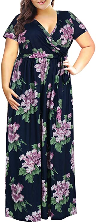 Nemidor Women’s Short Sleeve Floral Print Plus Size Casual Party Maxi Dress