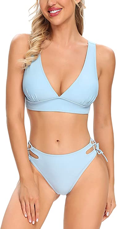 Lomitti Women’s Side Tie Bikini Set Light Support Laced Top Sexy Two Piece Swimsuit