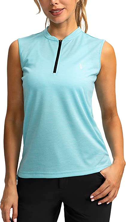 SANTINY Women’s Sleeveless Golf Shirt Zip Up Tennis Lightweight Quick Dry Tank Tops Polo Shirts for Women
