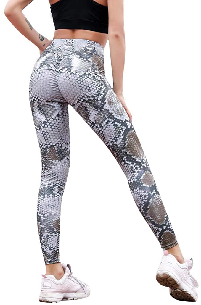 JOFOW Leggings Womens Snakeskin Print Ruched Butt Yoga Pants