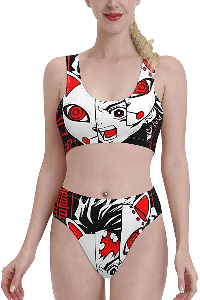 Demon Slayer Women’s Sports Swimsuit Two-Piece Short Top Bikini Set Sexy High Waist High Breast Swimsuit
