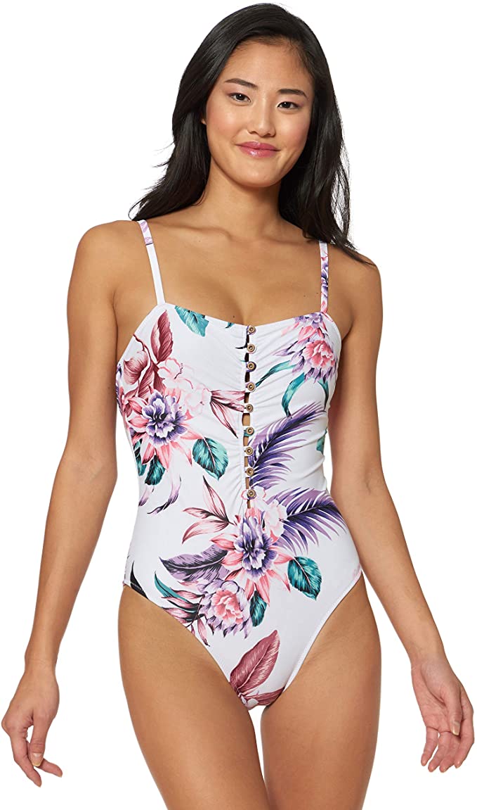 Jessica Simpson Women’s Straight Neck One Piece Swimsuit Bathing Suit