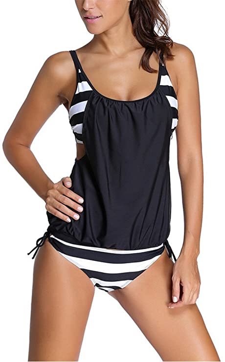 1. A flowing layer over a sporty-style swim top, tankini top.
