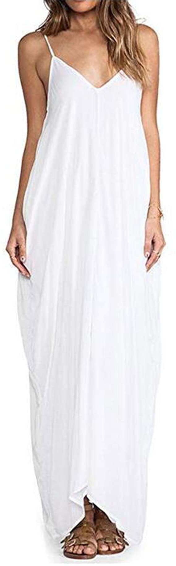 Long Dress Plus Size Boho Maxi Dress for Women Summer Flowy Beach Maxi Dress with Pockets Spaghetti Strap Sleeveless V Neck Ladies Maxi Dresses