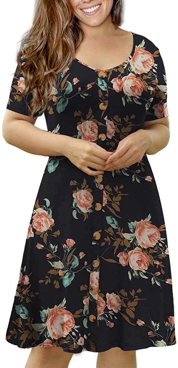 Plus size short sleeve dress buttons are decoration only, not functional. not worry that they may pop open.
