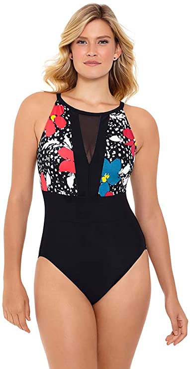 Turn heads as you strut your stuff on the beach thanks to this mega-flattering one piece from Penbrooke. You’ll want to wear this one every day once you catch a glimpse of your reflection, which features a high neckline with a v-mesh insert and built in soft cups for subtle shaping. The print top with the solid bottom gives you the best of both worlds, plus helps draw the eye to your best features while downplaying any perceived flaws.