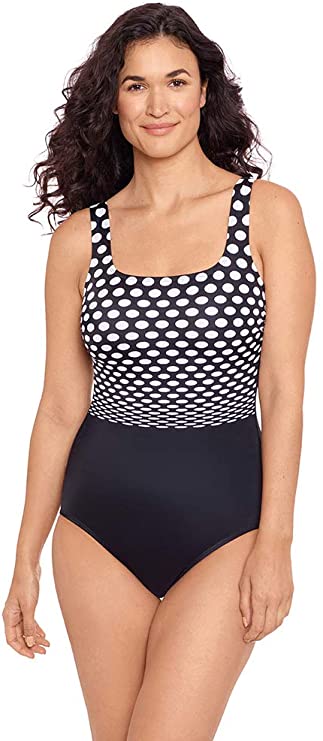 Going retro has never looked so good with this one piece from Reebok. The polka dot pattern on this sporty chic swimsuit has two purposes — first, it upgrades the look, making you look fashionable and on-trend. But beyond that, the strategic placement of each tiny dot helps you look sleeker and slimmer, too.