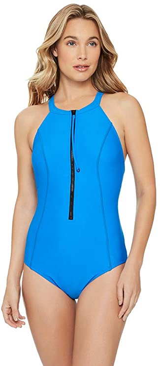 There’s an easy explanation for why everyone loves halter top swimsuits so much. This high neckline option from Reebok includes a sporty zipper design that can be adjusted to your desired comfort level. Soft cups help subtly shape your bust and create an enviable hourglass shape. The elongated waistline flattens trouble spots in your midsection and all over. The signature Silver Lining fabric has antimicrobial properties and chlorine resistant fibers for a long-lasting fit you’ll love to wear. It’s a little bit sporty, a little bit chic, and absolutely perfect for your next beach or pool adventure.