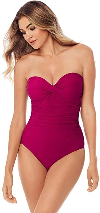 Be blissful while wearing this style that’s sure to embrace your every curve. The Miraclesuit Rock Solid Madrid Bandeau Swimsuit will certainly make a strapless believer out of you. Featuring an underwire molded cup bra and removable straps to accentuate and support the bust. A superbly feminine sweetheart neckline highlights the shoulders and arms. Next, we come to the empire waistline with just the right amount of shirring creates well-balanced definition while minimizing the belly and hips.