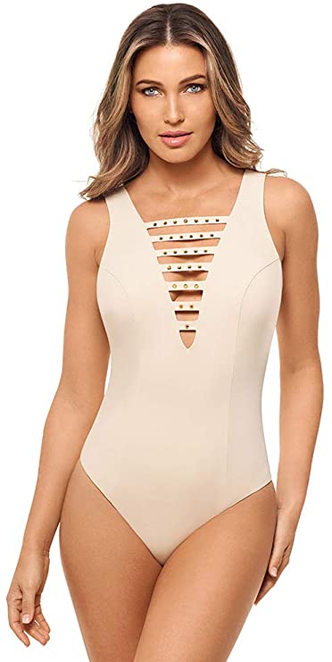 This ultra chic swim option from Amoressa by Miraclesuit provides you with the best of both worlds. On one hand, the plunging V-neckline delivers a sexy appeal with a daring look you’ll love feel total confidence while you’re wearing it. And the strappy detailing with crystals plays peek a boo and covers up your assets a little bit. Princess seaming helps slim down your figure and make you look taller and thinner with zero effort. Meanwhile, soft cups provide shaping and contouring, helping to create an hourglass shape. The all over medium control also smooths out lumps and bumps and camouflages a myriad of flaws like magic.