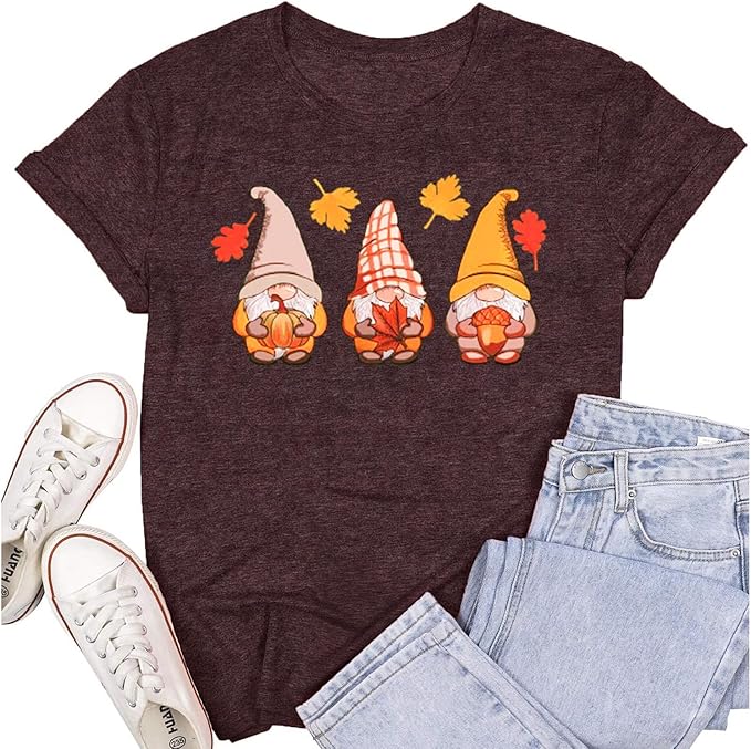 - 🎊Festive Flair for Her:Elevate your Thanksgiving celebrations in style with this adorable gnomes shirt featuring three charming gnomes, each brimming with holiday cheer.