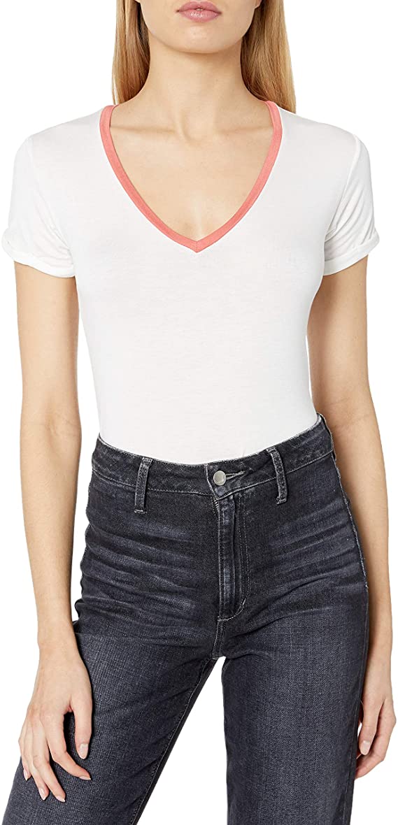 Trendy basic junior v-neck short sleeve crop top with contrast neck