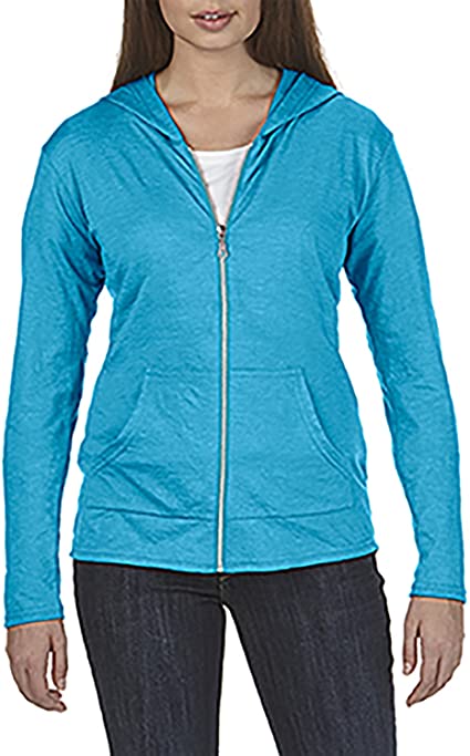 Unlined hood. Metallic zipper. Pouch pockets. Double-needle sleeve and curved bottom hem. TearAway label