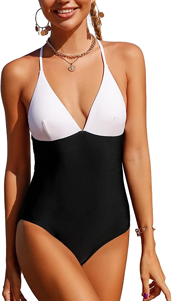 - This swimsuit features color block and plunge V neck, fashion and flattering.