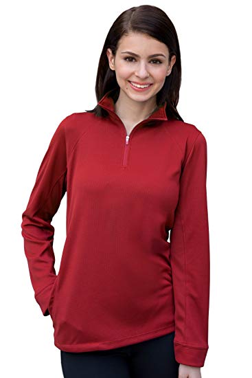 Vantage Apparel’s best-selling women’s activewear performance pullover. This moisture-wicking, quarter-zip pullover is perfect for working out or even just hanging out.