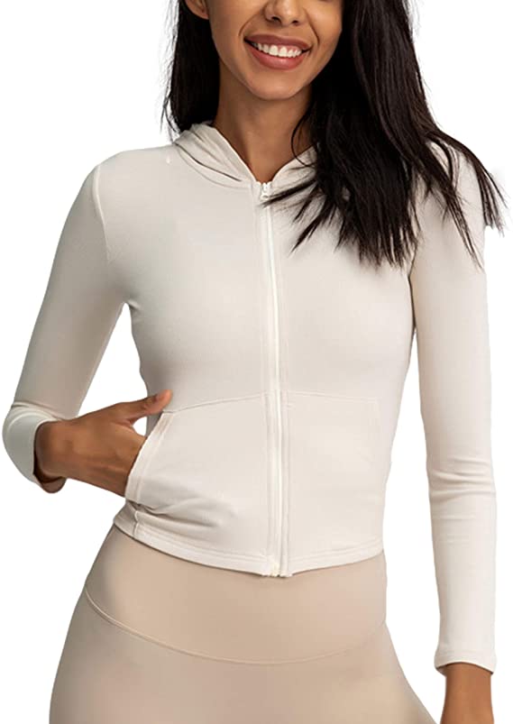 Gihuo Women’s Workout Gym Fitness Zip Up Sweatshirt Crop Jacket
