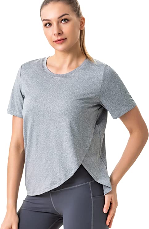 RUNNING GIRL Women’s Workout Shirts,Loose Fit Short Sleeve Yoga Tops Dry-Fit Plus Size Tanks