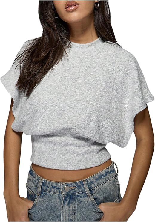 - Features: Round neck, dolman sleeve, cropped, casual tee shirt for women